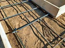 Далее выставляем опалубку, определяем место под цветник. Внутрь участка закладываем частую арматурную сетку. Там, где это возможно, привариваем её к сваям.